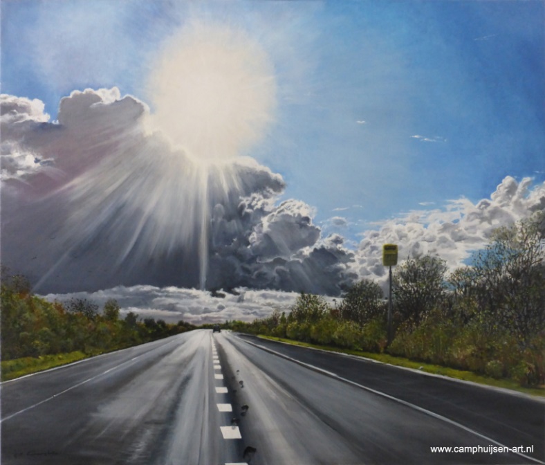 n elk schilderij leg ik een bepaald gevoel of beleving. Daarvan vind ik het mooi als ik kan communiceren via het doek. Natuurlijk heeft ieder een eigen associatie met het beeld op het doek. Maar mooi en bijzonder als het herkend en verstaan word. Zo gingen afgelopen maand weer twee schilderijen het atelier uit. Één is er naar Zeist gegaan waar het de wachtkamer in een fysiotherapie ruimte op is gaan luisteren. Er werd mij gezegd dat het licht en ook rust uitstraalde wat daarmee goed past in de wachtruimte.